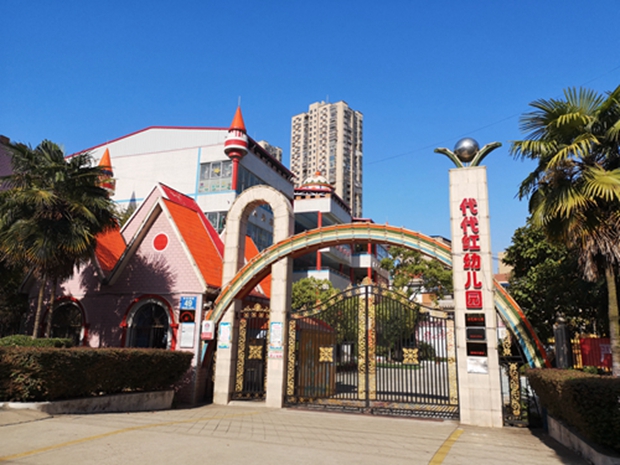 黄冈市代代红幼儿园创建于1999年,背靠东坡赤壁,毗邻青砖湖畔,占地面积16亩,建筑面积6000余平方米,总投资千万元。园所环境优美,规模之大、发展之快,倍受各级领导、社会各界和广大家长的赞誉。2003年、2006年先后被评为全国、全省先进民办幼儿园,2008年被评为湖北省平安校园及中央教科所李忠忱教学法实验基地,2010年被评为省级示范园, 2019年1月被评为全省最具影响的民办幼儿园。 一、坚持依法依规,优化办园条件 1、党建引领,不忘初心。2003年4月,该园建立了党支部,是黄冈市第一所建立党支部的民办幼儿园。还成立了工会、共青团、妇委会、职代会基层组织。 长期以来,在上级党组织的领导下,不断加强支部建设。抓组织建设,发挥支部堡垒作用;抓思想教育,提高党员党性修养;抓主题活动,强化学习成效;抓先进典型,发挥先锋模范作用。通过“四抓”,弘扬了党员对教育事业的奉献精神、对孩子的关爱精神、对教育科学的求真精神。2017年7月该园党支部被黄州区委评为“红旗党支部”,支部多名党员被赤壁街道办事处评为优秀党员、“两学一做之星”。 2、环境说话,游戏第一。从2017年开始,园区环境进行全面改造提升。新建500平户外风雨操场、150平趣味沙水池、添置大型木质滑梯、爬网滚筒组合。根据孩子的体能发展目标,大胆定制大型木制户外拓展玩具组合、有爬网、攀绳、吊杆、吊环,中小型游戏器材花样组合,还有民间本土户外游戏。幼儿参与这些活动,既锻炼了体能、增强体质,同时还提高了对环境的适应能力和自我保护意识和能力。 幼儿活动室明亮整洁,区域划分动静交替。有幼儿集体活动区、个性化区域游戏、安静午休室,就餐区及温馨卫生间。还有音体室、绘本室、乡土文化长廊、建构室、家长学校、教工之家、等多功能室。温馨雅致的绘本室,不仅满足孩子对世界的美好期待,还是亲子阅读休闲的最佳场所。建构室里,孩子们在自由的空间满足肆意的创作,美好世界就在这里诞生。乡土文化长廊,带着由节气知识、自然生长、乡土文化、庙会小吃等趣味操作,为孩子提供多元操作、认识家乡,体验家乡的美好。 3、快乐同行,一路芬芳。武汉极地海洋世界亲子游,每月集体生日会,大型户外体智能亲子互动,大型人偶剧《白雪公主》进校园,走进海军基地,争做礼貌小天使,六月欢歌文艺展演,亲子趣味运动会。一系列活动,孩子们非常喜欢。他们在一点一滴中享受亲情、感受互动的乐趣,体验真善美,同时也增强集体荣誉感。一个个活动的圆满完成,让老师和孩子共同成长,家长们也受益良多。