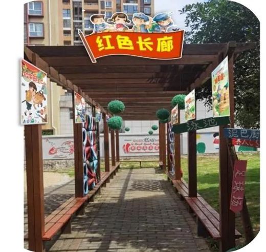 二、深度融合,创红色校园 1. 开设“党员之家”。2019年,在市委组织部的指导下,该园整合资源,在办公用房紧缺的情况下挤出一间作为党员活动室,确保党群工作有效开展。党员活动室建成后,党员教师找到了归属,成为了思想建党、组织建党、制度治党紧密结合的有力抓手,对该园党建工作有效开展起到了积极的推动作用。 2.开启人生“第一课”。为了让幼儿从小树立正确的人生观、价值观,爱党爱国家,该园积极营造氛围,组织老师们精心制作美观漂亮的卡片,将爱国小故事、传统文化、我国现代化建设的成就画在卡片上,悬挂于教室中。利用幼儿园围墙展板,充分宣传党的教育方针、社会主义核心价值观。通过环境布置,将爱国爱党的感情以充满童趣的形式融入儿童心中。