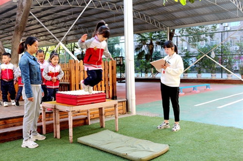 五、园本研究,能量辐射 《3—6岁儿童学习发展指南》中写到“发育良好的身体、愉快情绪、强健的体质、协调的动作、良好的生活习惯和基本生活能力是幼儿身心健康的重要标志,也是其他领域学习与发展的基础。”我园高度重视幼儿体育活动,把促进幼儿身心发展放在首位。开学前我组织各组组长讨论、制定体育学期计划,改变原有的观念,进行幼儿园体育多元化开展。合理安排户外活动时间,将每班活动时间分散化,每组活动时间时段化,保证每天不少于2个小时的户外活动时间。精心安排户外活动内容,早操、体育游戏、器械活动、传统游戏等多种内容贯穿到幼儿一日户外活动中。为了确保教学质量,我带领每组两名老师成立了体育小组,每周一次集中讨论活动内容、游戏形式、组织策略等,将讨论方案落实到每节活动中。活动前进行有针对性的指导,活动后有系统性分析、总结。 除了开展好本园户外体育活动,我还积极帮扶城镇幼儿园,指导团风县思源幼儿园参加市教科所本土化户外体育游戏活动,指导的游戏《神龙舞动》获得一等奖。 六、改革创新,全面发展 2017年年底,园长到山东利津幼儿园观摩学习,给我们带回了不一样的教育理念,特别是户外体育活动这一块。2018年5月,我到荆州实验幼儿园进行学习观摩户外体育活动,现场观摩的感受更是让人热血沸腾。“利津的孩子行,荆州的孩子行,代代红的孩子同样能行!”我在心里暗暗给自己打气。 回到幼儿园,园长一声令下:“体育必须改革!”首先改变园内环境,利用暑期两个月的时间,我们共同策划、设计打造一系列的大型户外体育器械:木质攀爬器、滑梯、树屋、爬绳、爬杆、爬管、吊杆、吊环、荡桥……9月份开学,家长们看到这些从未见过的体育器械,质疑、抵制的声音纷纷传来。那段时间我的内心十分煎熬,幼儿的安全和发展像一座天平一样不断的左右摇摆,到底什么才是最重要的?园长坚定信心的告诉我们:“我们的初衷是什么?不能让家长牵着我们的鼻子走!怎样扭转家长的观念呢?唯有用事实来说话。”有了坚强的后盾,有了执着的理念,我们卸下思想负担,全心投入。 体育部前期制作视频,介绍玩具,讲解玩具的正确玩法,提示安全注意事项……让家长、老师、孩子去了解、学习。同时确保玩具器械的安全性,在有安全隐患的地方放置软地垫进行保护,在硬质地面铺设草皮,在高处容易翻越的地方添置小栏杆......每天多次巡查器械的安全,摸一摸、摇一摇,发现问题、解决问题。在活动中,要求老师们要有序组织,耐心讲解、有效保护,积极鼓励。孩子们通过挑战,战胜了一个个困难,他们的胆量得到了提升,安全防范意识得到了培养,自信得到了增强。孩子们坚强、勇敢,不断的超越着自己。家长们看在眼里,喜在心里,对幼儿园的大胆改革慢慢接纳和无比敬佩。每天下午孩子们都舍不得离园,到处都能看到他们矫健的身影。体育改革的成功,收益的是我们的孩子。 (供稿 黄冈市代代红幼儿园,本文有删减) |