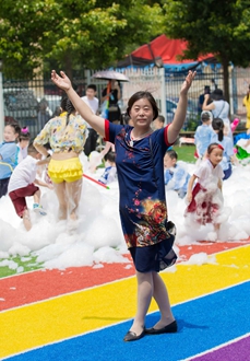 用爱做事业 殷俊明经常称园里的老师是“大宝贝”,这是她发自内心对老师们的喜爱。身为幼教人,深知幼教工作有多么辛苦多么的不容易。在生活中关心体贴每一位老师,创设最好的生活环境,特地给家不在团风的老师装修一套公寓,免费提供给老师们居住。不断提高老师们的薪资待遇,保证园内老师的工资待遇在黄冈地区幼教行业最高。还特意请来专业舞蹈老师,让老师们利用空余时间学习舞蹈,提升自身素质。在工作中,给老师提供了许许多多的学习平台和学习机会,每年的培训费用达数十万。当老师们遇到个别家长不理解工作的时候,殷俊明一马当先,挡在前面,做耐心细致的工作,让有尊严的老师给孩子们最好的教育。她严格按照上级的要求办园,从不居功自傲,以高度的责任感和敬业精神,为幼儿园的发展做实事,积极配合上级参加各项活动。她严格自律,要求全体教师洁身自好,联名公告不收家长一分钱红包,为教育者树立自身形象。她有一颗正直而又善良的心,在教师招聘和竞级竞职方面,坚持正当竞争,她深知“要得人敬己,先要已敬人”的古训,与幼教同仁和谐相处,共谋发展。