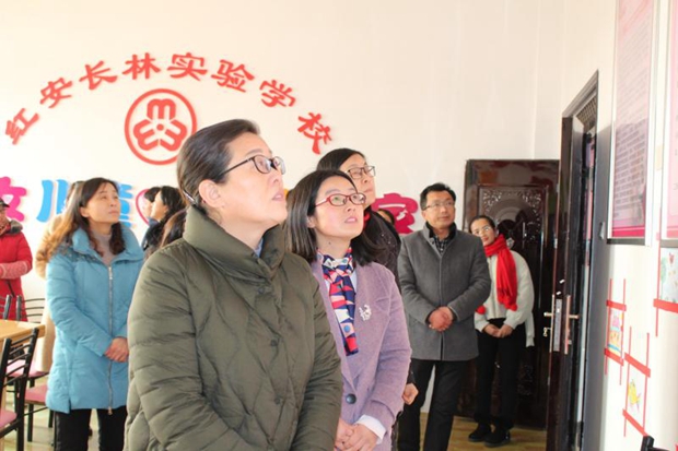 据了解,红安长林实验学校现有教职工95人,其中女性78人,女性教职工成为学校发展的关键力量。 张曙红一行先后参观了幼儿园教学楼、妇联文化长廊、妇女儿童之家,分别听取了妇联主任付燕红和幼儿园园长徐林花的工作汇报。