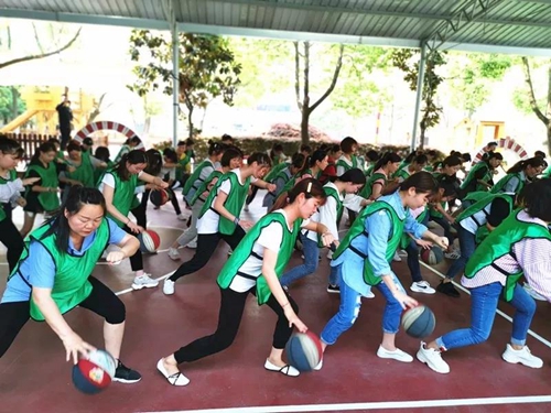 培训活动分理论、示范、实训三部分进行。在篮球的基础知识方面,教练们现场示范了原地单手拍球、高中低运球、体前变向、行进间运球、折返运球、进行间体前变向等技能技巧,热心指导每位老师的动作和姿势。在教练们的指导下,大家规范地练习了各项基本动作,掌握了单、双手拍球、坐地开合运球、体前变向运球、胸前传球等动作。大家还参与了抢球、运球接力竞赛等游戏,感受到了花样篮球的魅力。