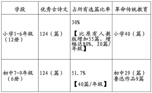 美好的假期总是过得飞快 小伙伴们可要赶紧收心啦 在即将到来的新学期 中小学的教材将出现大变化! ▼ 全国教育改革有了最新动向 和历史性变革! 学了这么多年的中小学课本 要!大!改!版!了! 此前 教育部办公厅发布了 2019年中小学教学用书目录的通知 ▼▼▼ 根据教育部规定 在即将到来的秋季新学期 各省小学初中各学科使用 《义务教育国家课程教学用书目录》中的教材 道德与法治、语文、历史 全部使用统编教材 此前在这三个科目上使用的 多种形态的教材 将告别课堂,成为历史 这也意味着“一纲多本”的时代终结 作为最重要的一门学科,语文教材的变化,是所有家长、老师最关心的问题。 对于这次语文教材的改革和变化,教育部统编本,中小学语文教科书总主编温儒敏表示: 1、阅读速度,以前卷面大概7000字,现在是9000字,将来可能增加到1万字; 2、阅读题量也增加了,今年的题量,不是题目的数量,是你要做完的题的体量,比去年悄悄增加了5%~8%。 传统文化内容有所增加 来源:教育部官网 |