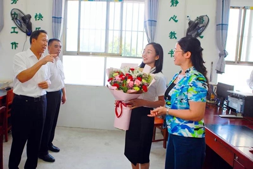 市委书记刘雪荣、市长邱丽新教师节前走访慰问教师