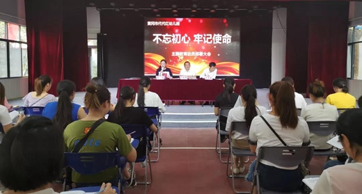 市新世纪幼儿园9月30日晚在多功能厅召开“不忘初心、牢记使命”主题教育动员部署会。会议学习了中小学(幼儿园,公民办)主题教育重点工作任务,对教师进行党史培训,集中观看时代楷模张富清《本色》纪录片。市直民办学校联合党支部书记、市教育局第八巡回指导组成员张小勇到会指导,张小勇指出,民办幼儿园要通过主题会议深刻认识到主题教育的重大意义,真学真做真改真干,切实本次主题教育取得实效,提高党性修养水平,进一步发挥先锋模范作用。