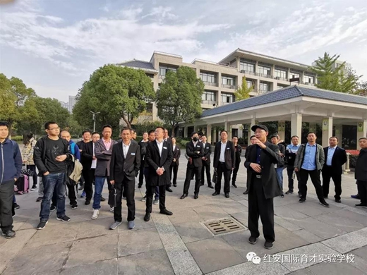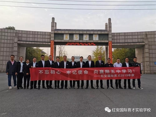 11月1日上午,红安国际育才实验学校校委会成员、高中各年级组长组成的考察团一行16人,在董事长韩培塔、校长张友顺的带领下,来到中国百强中学——襄阳五中进行参观学习活动。