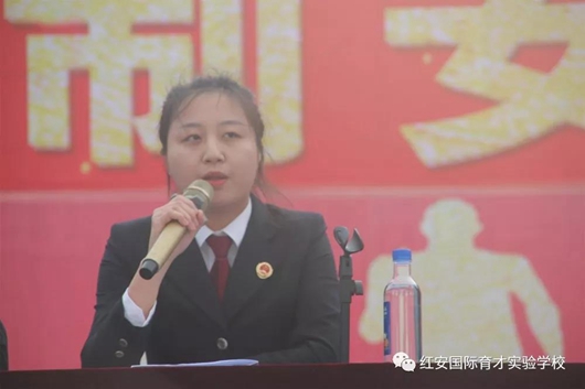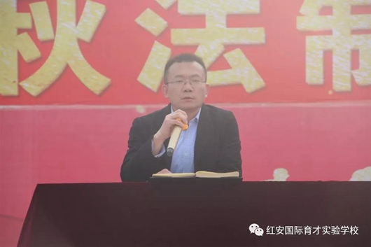 为广泛深入开展法制教育,提高学生的法律意识和安全意识,推进依法治国,创建平安校园,11月15日下午,红安国际育才实验学校邀请红安县人民检察院未成年人检察工作办公室检察官王宏丽、钱珊,红安县龙吟律师事务所执业律师、红安国际育才实验学校法律顾问熊中华,为全校3000余名师生进行了专场法制教育讲座,讲座由副校长刘小林主持。