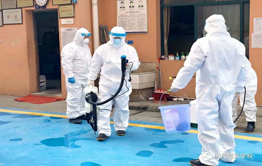 校园全面消杀,力保学子安全 在消毒过程中,消毒人员严格按照相关要求,认真配好消毒液,对全校的走廊楼道、办公室、教室、寝室、厕所等区域进行了全面喷洒消毒,不留死角、不留盲区,进一步净化了校园环境,实实在在地为全校师生的安全保驾护航。同时,学校也通过各种途径备足备齐体温检测仪、消毒液、防护口罩等防控物资,为疫情期间开学工作提前做足准备。