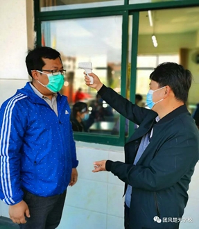 疫情防控演练,确保师生安全 学生报到入学模拟演练现场,教职员工以返校学生身份,现场演练和检验预案。 演练现场,所有返校“学生”根据通知要求,一律佩戴口罩回到学校门口排队等候检查。此时校门口外已按1米距离画好排队间隔位置。“学生”依次通过安全检查通道,经工作人员测试体温无恙后进入学校。
