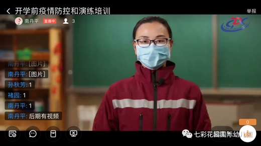 4月16日,浠水县七彩花园幼儿园举行开学前疫情防控培训活动。活动前,幼儿园疫情防控领导小组成员首先一起在钉钉直播网上进行集体学习,并安排全园教职工分批学习,做到不落一人。