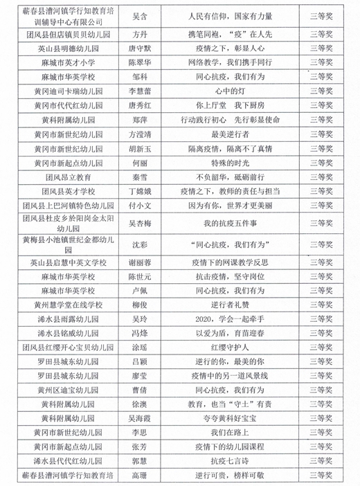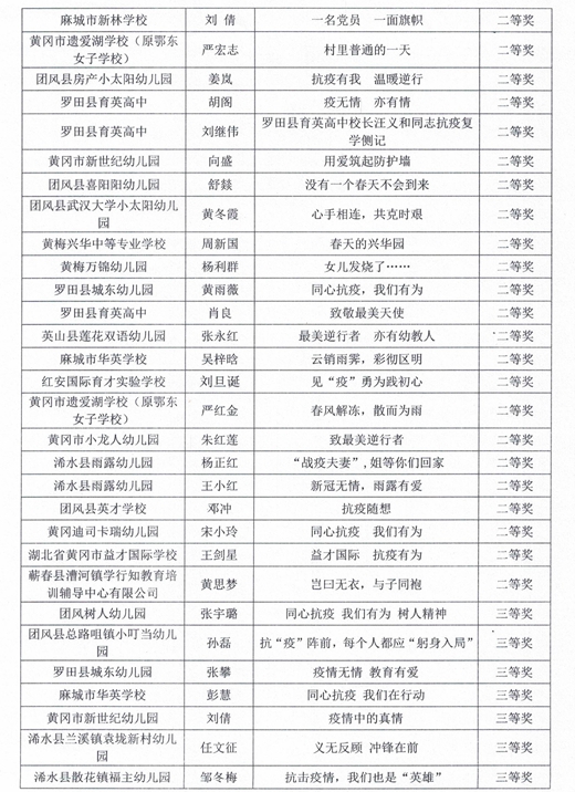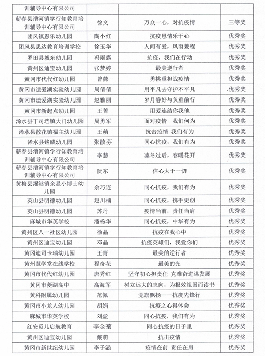 权威发布丨黄冈市民办教育系统抗疫主题征文和书法竞赛获奖名单