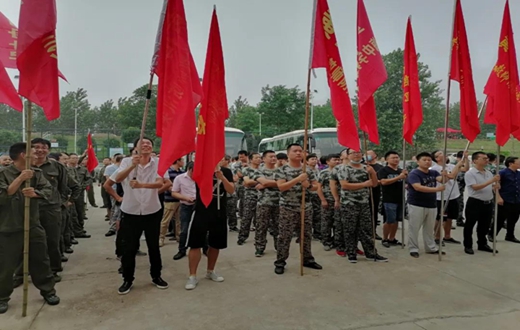 第八哨棚临时支部书记胡灿华对晋梅教师防汛队员的积极工作称赞有加,他说:晋梅的老师讲责任,守纪律,风采高,能够吃苦耐劳。 7月18日上午8时,8号哨棚外,鲜红的党旗下,晋梅中学防汛临时党支部成立。在石良军副校长的领誓下,全体党员和村委会的几位老党员一起高举右拳,重温入党誓词。