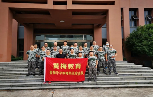 汛情就是命令,防汛就是责任。随着长江黄梅段水位不断上涨,全县防汛工作已经进入了战时状态。7月17日,黄梅县晋梅中学积极响应县防汛指挥部号召,立即行动,组建晋梅中学防汛突击队,20名中青年男教师迅速集结,奔赴抗洪一线,与洪魔搏斗。