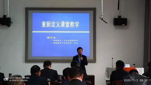 3日上午,在华中师范大学教育管理综合大楼101教室,胡文生作了题为《重新定义课堂教学》的学术报告。他围绕“课堂革命”这一话题,从教学关系、教学目标、教学材料、教学技术等方面进行全面的分析,为培训班的学员们生动地阐述了重新定义课堂教学,让教育回归它的本质的重要意义、作用和做法。