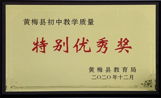 黄梅县育才实验学校再获2020年黄梅县“初中教学质量特别优秀奖”