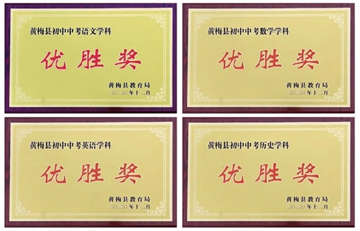 12月31日,黄梅县2020年初中教育工作会在黄梅县教育局召开,会上表彰了2019~2020学年度初中教学质量综合评价先进单位及个人,黄梅县育才实验学校2020年中考成绩斐然,脱颖而出,荣获县教育局颁发的2019~2020学年度初中教学质量特别优秀奖,多个学科居全县第一名,并荣获“中考学科优胜奖”。