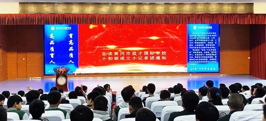 3月22日,黄冈市益才国际学校在学校五楼报告厅举行“小初部小记者社团启动仪式”。