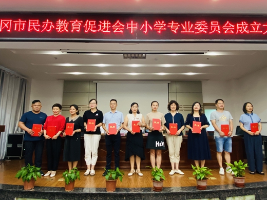 会议首先由常务副会长冯子武宣读了市民促会中小学专业委员会、学前教育专业委员会组成人员名单。黄梅县育才实验学校校长胡文生被聘为第一届中小学专业委员会主任,团风英才学校校长吕锋、浠水县散花镇育英小学校长黄振南、蕲春兴华中学校长胡武能、黄冈天有高级中学工会主席王慧勤、罗田县龙凤中学主任王雨潇、英山县启慧中英文学校校长郭熠、麻城市博达学校常务副校长刘自力、红安培文实验学校校长程法印、黄冈市遗爱湖学校常务副校长严宏志被聘为副主任,黄梅县育才实验学校常务副校长柯阳兵被聘为秘书长。