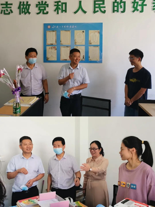 随后潘华书记深入教师办公室,看望并慰问了教师,详细询问了教师工作及生活情况,对大家的工作表示肯定并致以节日的问候。 在座谈会上潘华书记对黄冈市益才国际学校为蕲春县教育事业做出的贡献表示感谢,对学校取得的成绩予以肯定。潘华书记强调:“要将学校安全始终放在首位,在生活上关照师生,加强心理疏导,全县所有学校都要以建设平安校园为目标,严格疫情防控,加强防溺水教育等工作。”