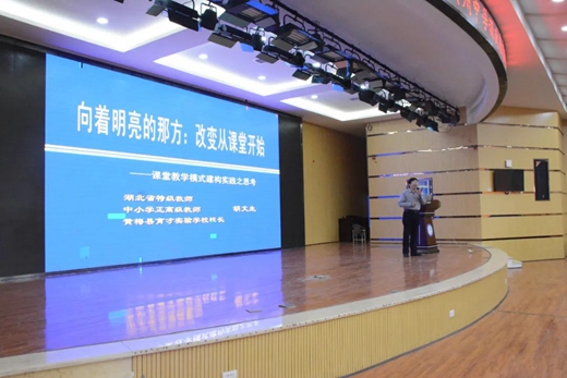 接着胡文生校长就课改问题为我校老师做了一场题为《向着明亮的那方:改变从课堂开始》的报告。胡校长高屋建瓴,从教育部颁发的关于课改和“双减”政策文件到传统课堂中存在的问题,展开分析,提出教育需要自下而上的课堂改革。他强调老师要转变观念,充分相信学生,激发学生潜能,将课堂交给学生,把学习权利还给学生,充分尊重学生主体地位,让学习真实有效地发生在每一个学生身上。同时他还剖析了改革以来的课堂教学模式,总结出高效课堂的核心环节就是预习、展示和反馈,分享了黄梅育才实验学校在探索“三自”课堂中的有效经验。胡校长的报告深入浅出,娓娓道来。有理论高度,更有可操作性,拓宽了老师们的视野,增强了老师们的信心,对我校课改的推进具有很强的指导意义。
