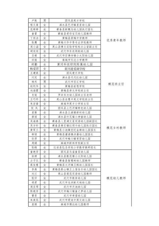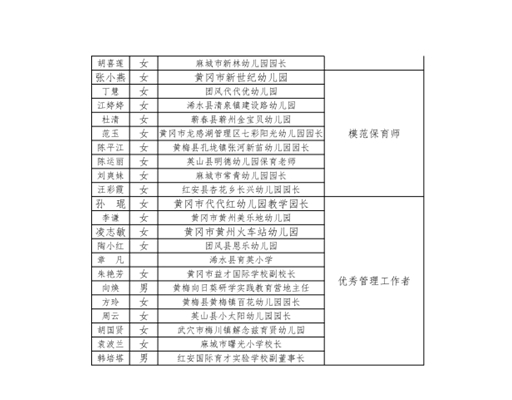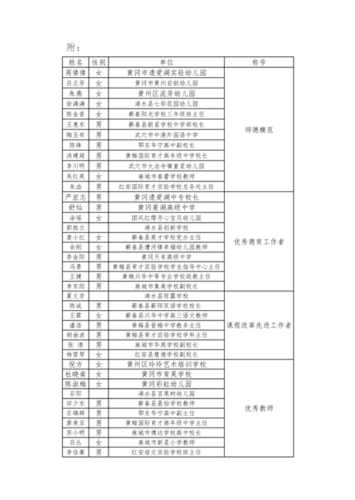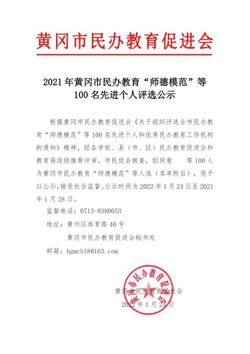 2021年黄冈市民办教育“师德模范”等 100名先进个人评选公示