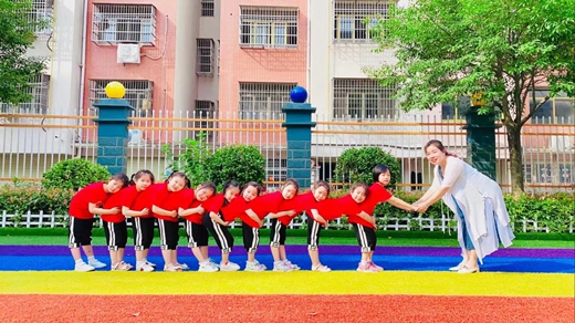 二、以学促教,打造强势好团队 拥有一个敬业爱岗、团结向上的团队,才能真正留住孩子。面对公办园的强大师资优势,她深知,民办园只有抓好培训、教研,不断提高教师专业素养,才能生存、发展。为此,她提出组建“学习型团队”的目标,把培训学习、听课评课等活动纳入每月常规考核,个人表现与绩效挂钩。她经常组织教研观摩活动,多次进行实践研究,在研究中比较不同的教学策略和教学方法。在学、做、研、思的过程中,寻找教育活动中所隐含的教育价值。她经常挤出时间一起听课,听后进行评议,从而让教师明白有价值的教育应该如何来组织。她在处理好管理事务的同时,还深入幼教一线,亲自给新教师上示范课,帮助新教师尽快成长。 教育要面向世界,面向未来。为了让教师学到更多更新更实用的技能,让幼儿全面成长,她遍访名师,经常邀请一些幼教专家,前来入园培训。如体智能、好好玩音乐、奥尔夫音乐、亿童户外游戏与美术启蒙、库克智能钢琴等,让师生在学中玩,在玩中学,获益良多。