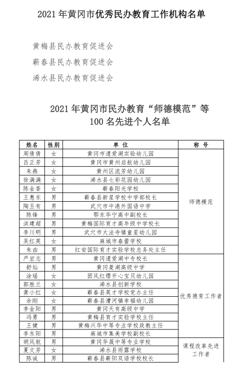 【喜报】黄冈市民办教育促进会表彰优秀民办教育工作机构和先进个人