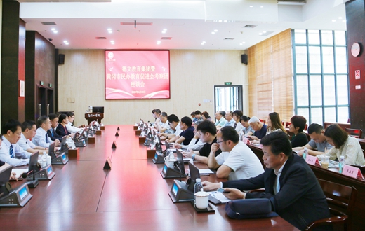参观完毕,在启贤会议室召开了座谈会。集团领导向考察团成员们介绍了德文教育集团以及厦门工学院附属学校的发展历程,并就学校的管理模式、课程建设、教师培养、办学成果等情况做了分享交流。学校成立于2016年,设有幼儿园、小学部、初中部、高中部(含国际方向),是一所提供双语浸润式学习课程的十五年一贯制、以学生全面发展为核心的非营利性全日制寄宿学校。学校以“科艺双馨”为办学特色,实行“小班化”的教学模式。自2018年以来,学校中考质量逐年攀升,在区内外形成较大影响。自办校以来,高考实绩连续两年突破质量指标,创造了“低进高出”的成绩,50多名同学被北京大学、厦门大学、中山大学等双一流高校录取。融合国际课程班实现100%大学录取率,55%进入世界TOP100名校。