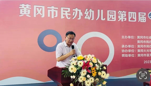 莅临开幕式的领导、嘉宾有:黄冈市教育局党组成员、黄冈市民办学校行业党委书记汤伯意,黄冈市社会力量管理办公室科长张思宇、黄冈市教育局法制安全科负责人张小勇、黄冈市教育局基础教育科副科长毛冰,黄冈市民办教育促进会会长王剑星,黄冈市民办教育促进会党支部书记、副会长、学前教育专业委员会主任刘俊,蓝天科技集团董事长张方旺。