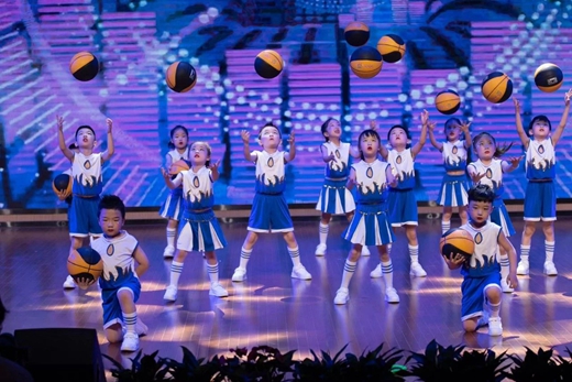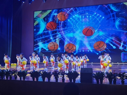 一个个幼儿昂首挺胸,充满自信。伴随着活泼动感的音乐,小小的篮球在孩子们手中玩转自如——单手交替拍球、双手拍双球、跪立拍球、坐拍球、变换方位运球。专注而认真,眼随球走、球进人进、球退人退。一支支代表队配合默契,队形变化整齐,动作有力。娴熟的技巧,轻快的步伐,不停变换的动作和队形,篮球在不停地跳跃,犹如一道道美丽的弧线,让人目不暇接。小球员们一个个身手不凡、动作灵敏,全身蓄满的能量随着音乐节奏释放,彰显着阳光与活力,他们拍出了运动的激情,更拍出了童年的别样精彩,赢得了台下评委和观众的阵阵掌声。