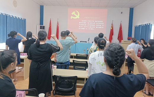 重温入党誓词,不忘初心使命。面对鲜红的党旗,与会同志一起高举右手,再次庄严宣誓。“我志愿加入中国共产党……随时准备为党和人民牺牲一切,永不叛党。”一字一句,神圣而豪迈,大家再一次接受了入党誓词的洗礼。时刻提醒着自己所肩负的神圣使命和责任,教书育人,做一名合格教师。