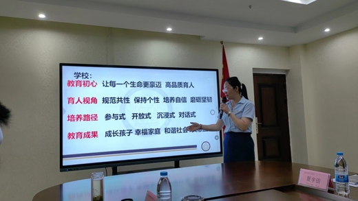 之后,益才盛华学校副校长朱艳芳代表学校作经验交流。她首先对县教育局的领导,全市各兄弟民办学校校、园长的到来表示热烈的欢迎。随后,她介绍了学校的基本情况、办学特色和未来发展思路等。