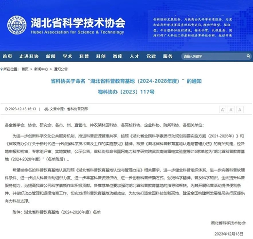 黄梅向日葵研学实践营地获评“湖北省科普教育基地” 近日,省科协印发《关于命名“湖北省科普教育基地(2024-2028年度)”的通知》(鄂科协办〔2023〕117号),黄冈15家单位被命名为“湖北省科普教育基地(2024-2028年度)”,我会常务理事单位——黄梅向日葵研学实践营地位列其中。 |