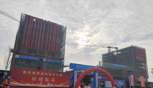 4月10日上午,天地晴明、惠风和畅,黄冈美苑高级中学综合大楼封顶仪式在黄冈市临空经济区隆重举行。