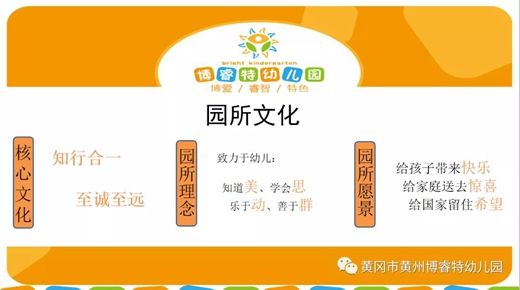 园所介绍 黄冈市黄州博睿特幼儿园,精英教育的领跑者,位于黄州东门路清华花园小区内,比邻黄州区一中。投资1200万以湖北省省级示范园标准建造,室内活动面积1500平米、户外活动面积1200平米,常设8个教学班,服务200个学位。设有音体多功能厅、美劳工作坊、绘本阅读馆、教师成长交流室、家长交流室等多个特色教学区。 教师团队配备专业,每班两教一保,多年从教经验,均持有幼儿园教师资格证书。配有专业舞蹈教师、专业陶艺教师、外教、体智能运动训练男教师。 安全设施达到省级示范水平,24小时保安值班。全职园医保健指导、科学配餐,高端厨房配置、专业厨师制作两餐一点,给孩子的成长提供安全、健康的成长环境。