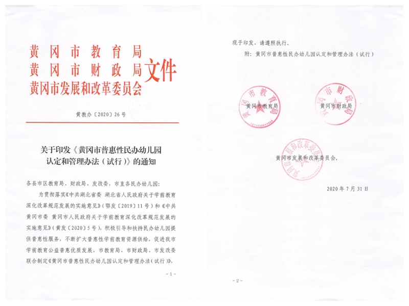 黄冈市普惠性民办幼儿园认定和管理办法(试行)