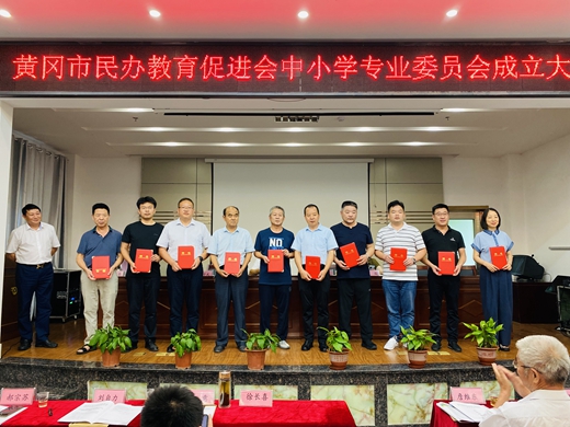 会议首先由常务副会长冯子武宣读了市民促会中小学专业委员会、学前教育专业委员会组成人员名单。黄梅县育才实验学校校长胡文生被聘为第一届中小学专业委员会主任,团风英才学校校长吕锋、浠水县散花镇育英小学校长黄振南、蕲春兴华中学校长胡武能、黄冈天有高级中学工会主席王慧勤、罗田县龙凤中学主任王雨潇、英山县启慧中英文学校校长郭熠、麻城市博达学校常务副校长刘自力、红安培文实验学校校长程法印、黄冈市遗爱湖学校常务副校长严宏志被聘为副主任,黄梅县育才实验学校常务副校长柯阳兵被聘为秘书长。