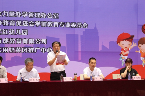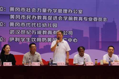 在热烈的掌声中,李尧东致欢迎词。他说,今天的大赛在这里隆重举行,体现了黄冈民办幼儿园在全面贯彻党的教育方针,在幼儿园去小学化方面走在了最前沿。比赛的不仅仅是技巧,更会比出孩子们的自信,比出孩子们的集体荣誉感,比出孩子们的拼搏精神。通过比赛活动,锻炼了孩子们的身体,愉悦了孩子们的精神。相信占全市幼儿园70%的民办幼儿园会做出榜样,会办成家长信任、满意、放心的幼儿园,孩子们一定会在我们的幼儿园收获天真、活泼、快乐、健康、美丽。